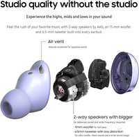 Bringing a way for everyone to enjoy epic sound. With audio quality this good, you'll feel the thump of every bassline and strum of every guitar right in your core — it's like dropping you into your favorite band’s concert. Need to focus? Active Noise Cancellation and Ambient Sound control let you hear only what you want to hear. Enjoy some peace and quiet while you work from home or take calls without missing what’s happening around you. Featuring our slimmest and lightest design yet, Buds fit so well, you may forget you're wearing them — at least until the music starts. *Features including Active Noise Cancellation and Ambient Sound require a Bluetooth connection to a compatible device. *Advanced settings such as Ambient Noise Levels available only on Android devices running Android 7.0 or higher and 1.5GB RAM or above. Advanced features enabled through the  Wearable app on Android, available through the Google Play Store. *Actual battery life may vary and depend on usage conditions such as function settings, playback file type and Bluetooth signal strength. Play time may vary based on settings. *Wireless PowerShare limited to other brand smartphones and accessories with WPC Qi wireless charging. *Touch Control available only on Android devices running Android 7.0 or higher and 1.5GB RAM or above.  Wearable app Watches available through the Google Play Store. *Auto Switch feature only available on  smart phones and tablets with  OneUI 3.1 or later. Certain applications may not support Auto Switch.  devices must be logged in to your Account to enable Auto Switch. One-Step Connection feature only supported on devices running  One UI 3.1 or later.